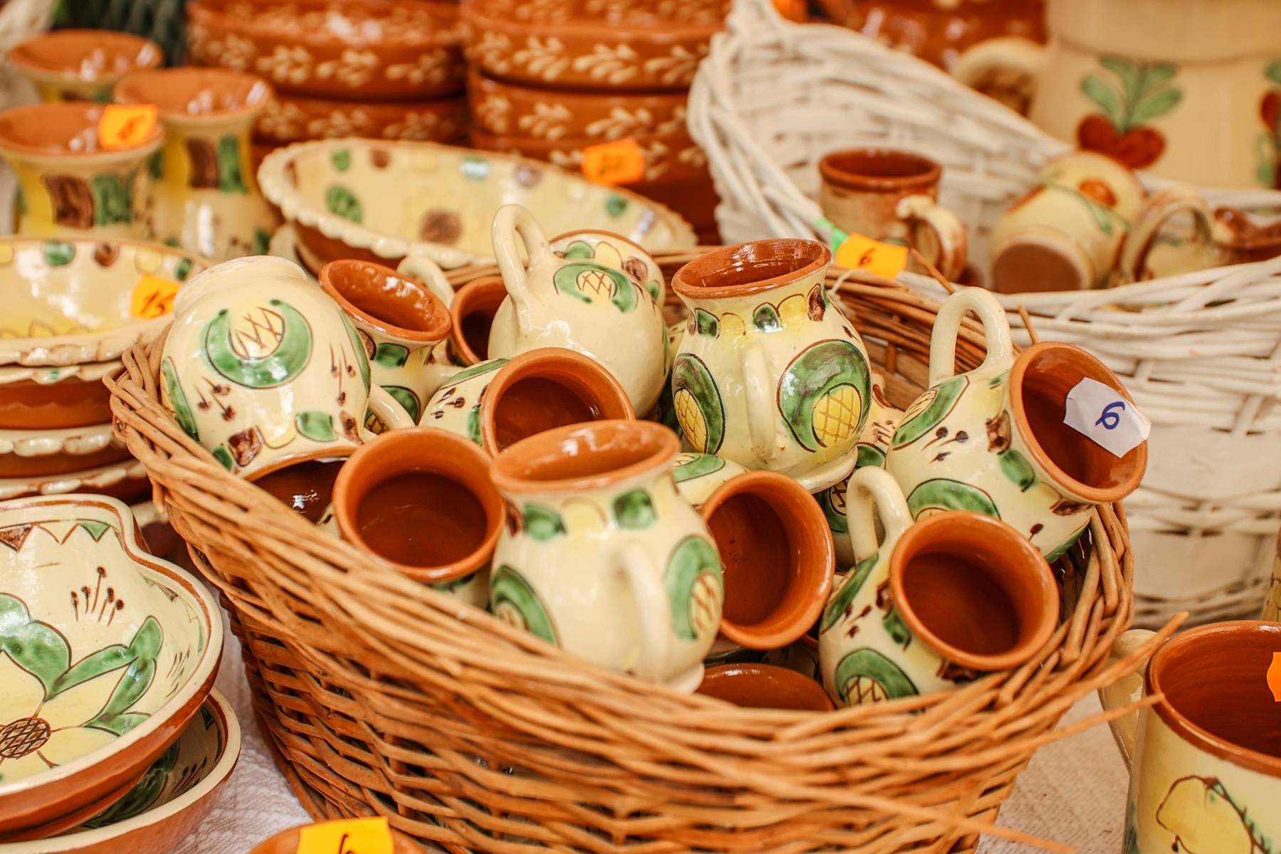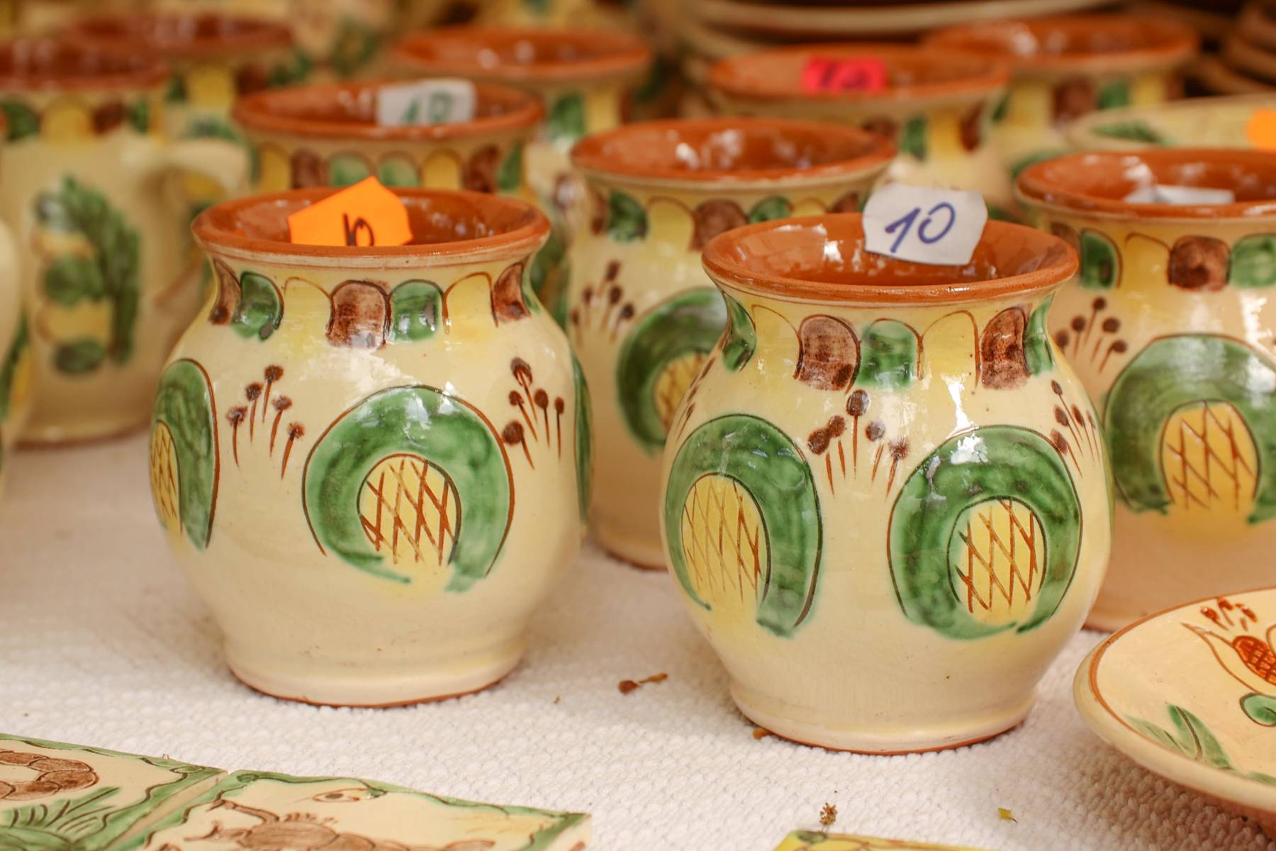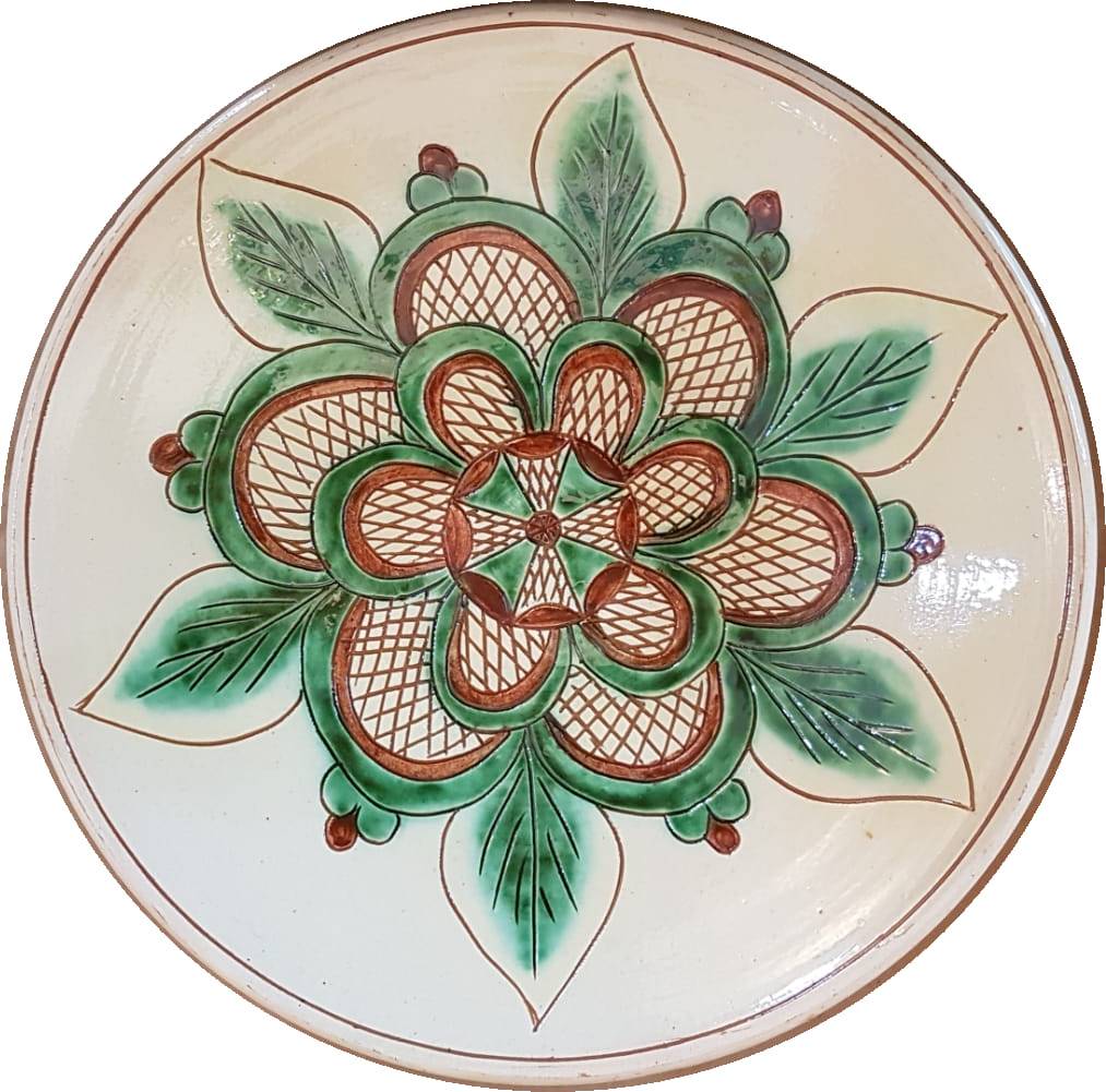 Produsele acestei categorii de ceramică au la bază desenul naiv stilizat și o gamă cromatică alcătuită din tonuri de verde, galben și brun (cafeniu) pe fundal alb-ivoir angobat, reprezentând cele patru anotimpuri ale anului. Arderea se face în cuptor la aproximativ 1.000°C și este o etapă dublă, realizată înainte și după etapa de smălțuire, aceasta din urmă precedând etapele angobării, sgrafitării și pictării vaselor.