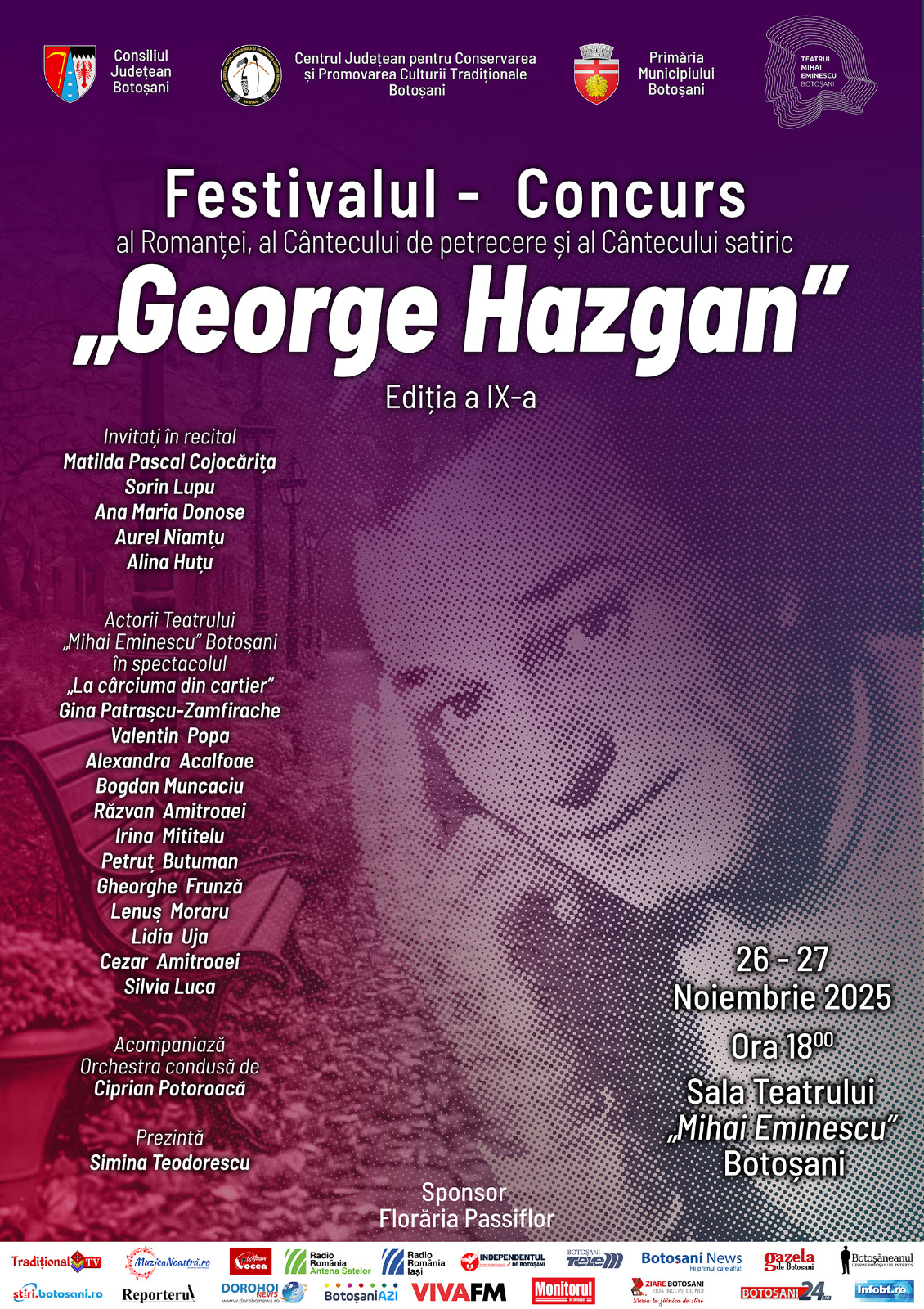 Comunicat de presa Festival – Concurs al Romanței, al Cântecului de Petrecere și al Cântecului Satiric „George Hazgan” 26-27 noiembrie 2025