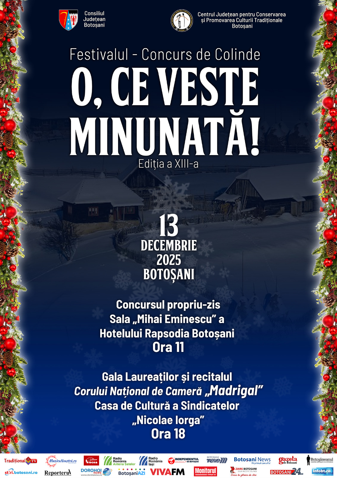 Regulament • Festivalul – Concurs Coral de Colinde ,, O, ce veste minunată! ”, Ediția a XIII-a, 13 decembrie 2025